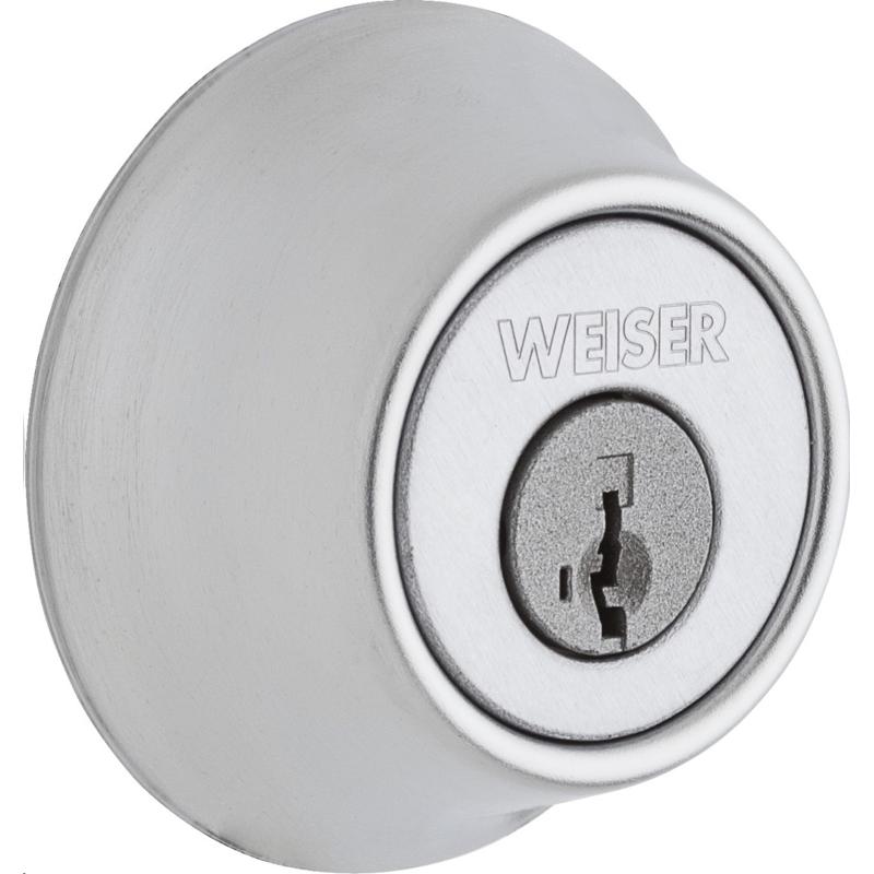 Elements by Weiser® provides an expanded choice styles and finishes at an affordable price. This single cylinder deadbolt can be locked or unlocked by a key on the outside, or the turn piece on the inside. The Satin Chrome finish gives the product a modern and minimalist look.