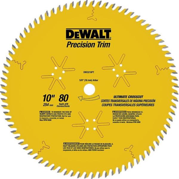 DEWALT 10" CIRCULAR SAW BLADE 80T PRECISION TRIM DW3218PT