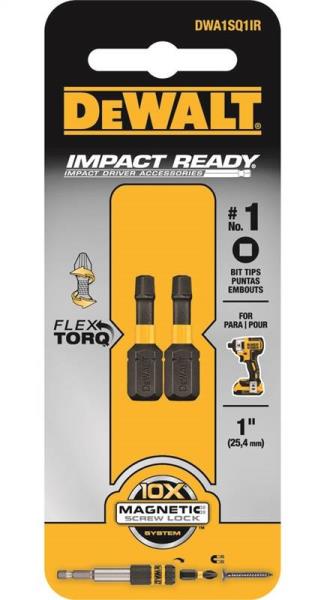 DEWALT 1" SQUARE #1 IMPACT READY SCREWDRIVER BIT 2 PK DWA1SQ1IR