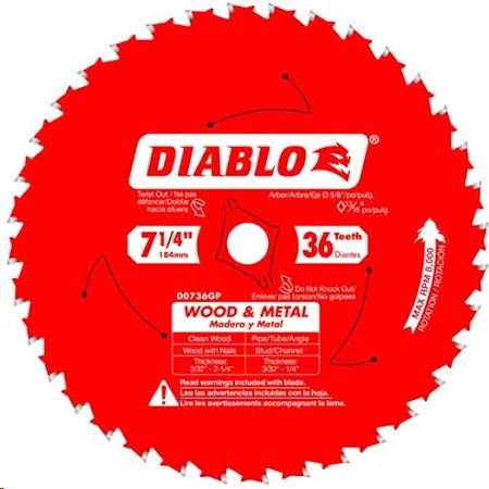 FREUD DIABLO WOOD & METAL BLADE 7-1/4" 36T D0736GPA