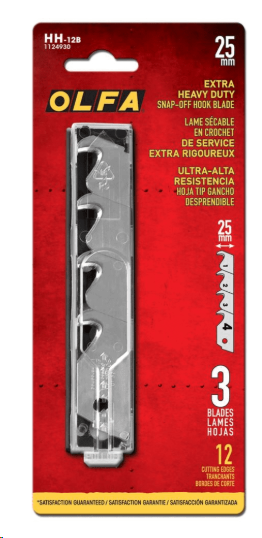OLFA SNAP OFF HOOK BLADE 25MM X-HEAVY DUTY 3/PK HH-12B
