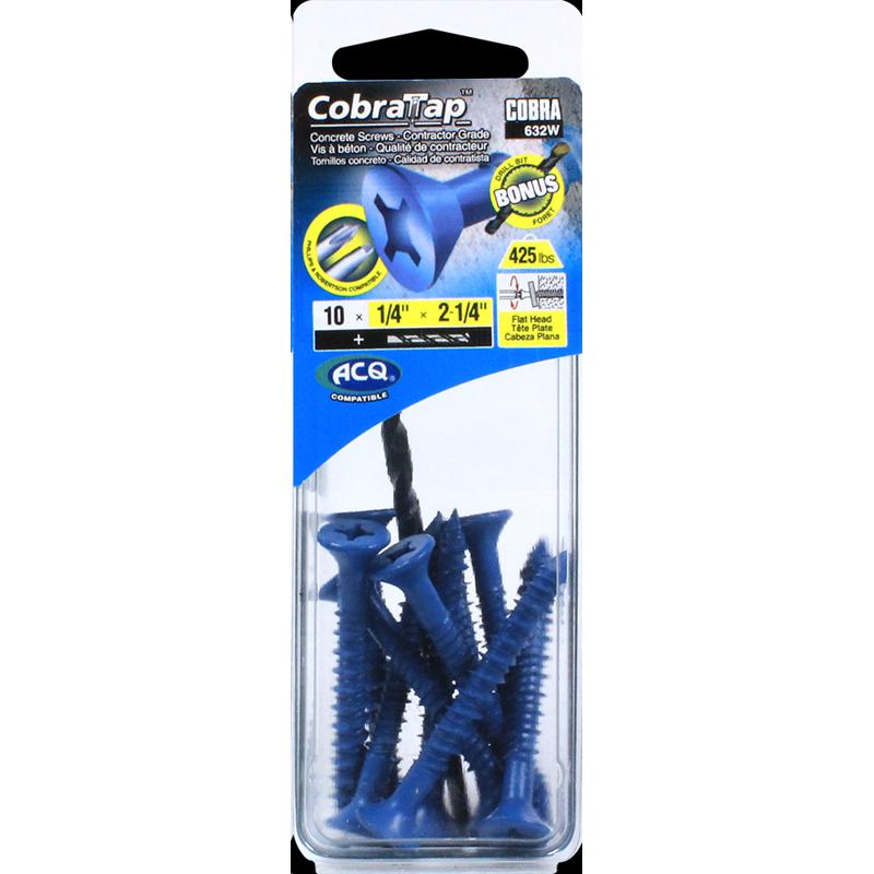1/4" X 2-1/4" FLAT HEAD CONCRETE SCREW 10PK