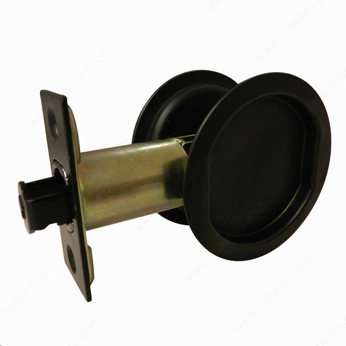 ROUND POCKET DOOR PASSAGE LOCK FLAT BLACK
