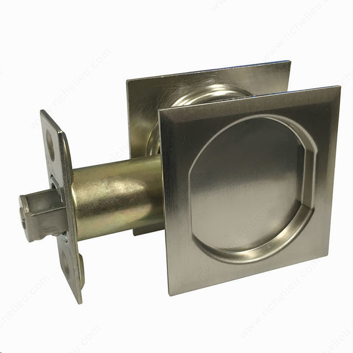 SQUARE POCKET DOOR LOCK PRIVACY BRUSHED NICKEL