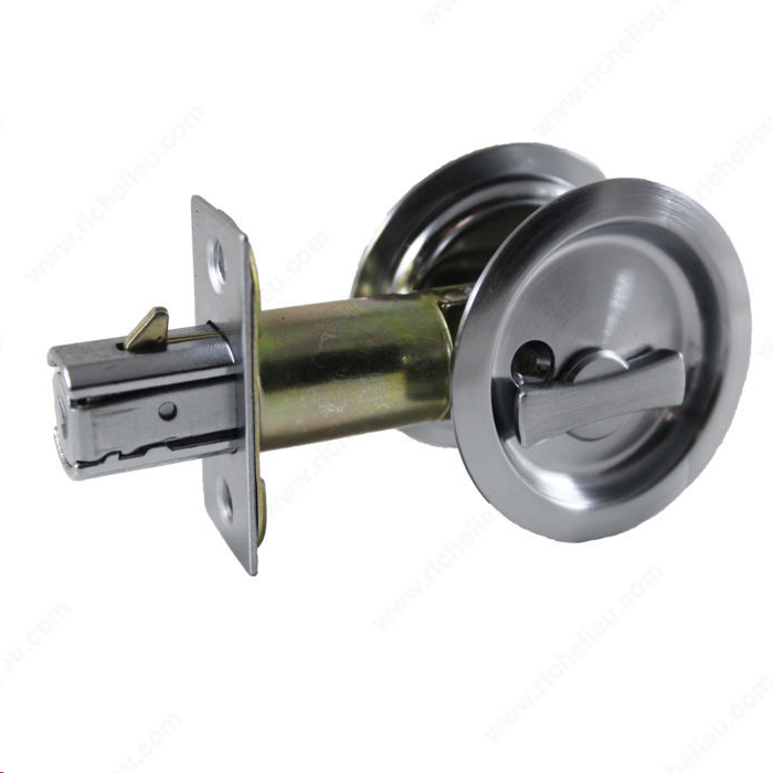 ROUND POCKET DOOR PRIVACY LOCK BRUSHED NICKEL