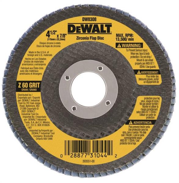 DEWALT 4-1/2"X7/8" 60G ZIRCONIA FLAP DISK DW8308