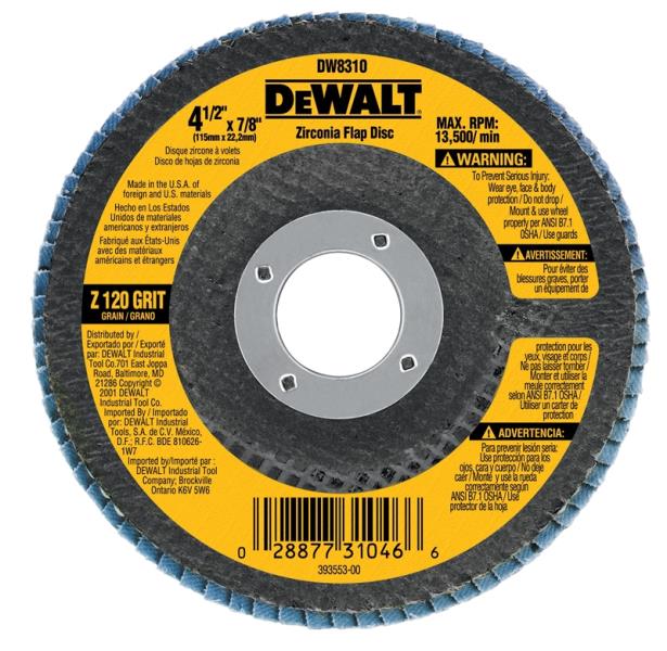 DEWALT 4-1/2"X7/8" 120G ZIRCONIA FLAP DISK DW8310