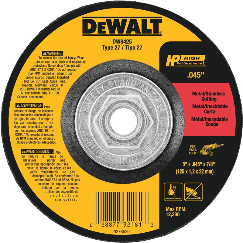 DEWALT 5"X1/16" DEPRESSED CENTRE ABRASIVE WHEEL METAL DW8425