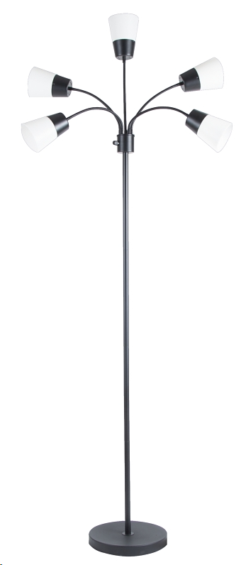 BOSTON HARBOR 5 HEAD LED BLACK FLOOR LAMP