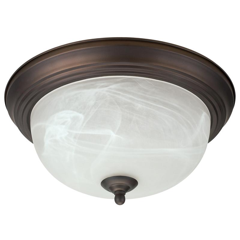 13" CEILING DOME ALABASTER GLASS LIGHT FIXTURE OIL RUB BRONZE